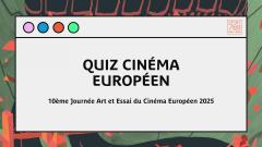 À votre disposition également dans le kit, un quiz de 16 questions conçu spécialement pour la 10e Journée Art et Essai du Cinéma Européen et les 70 ans de l’AFCAE, afin de vous permettre d’éprouver, de façon ludique, la cinéphilie de votre public, le 23 novembre.